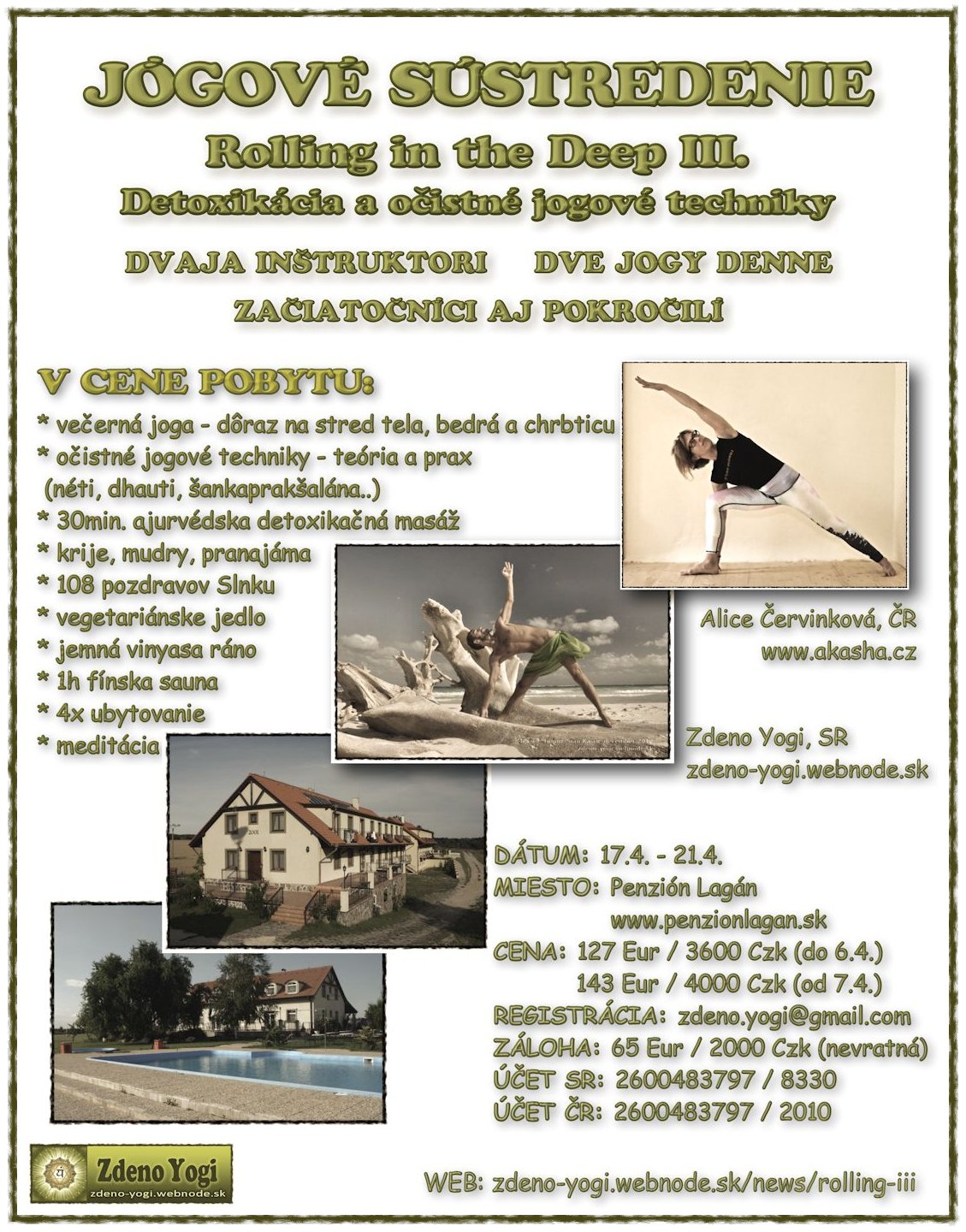 Registrácia: zdeno.yogi@gmail.com (predbežná registrácia: majl, záväzná registrácia: zaplatenie ceny)