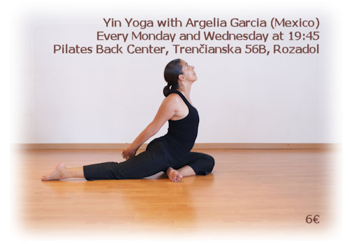 18.07.2011 14:46Oddnes každý pondelok a stredu o 19:45 v Pilates Back Center bude namiesto mňa precvičovať jogu učiteľka jogy Argelia Garcia z Mexika až do 3.8.2011. Učiť bude Yin Yogu - pomalú príjemnú ukludňujúcu jogu :)